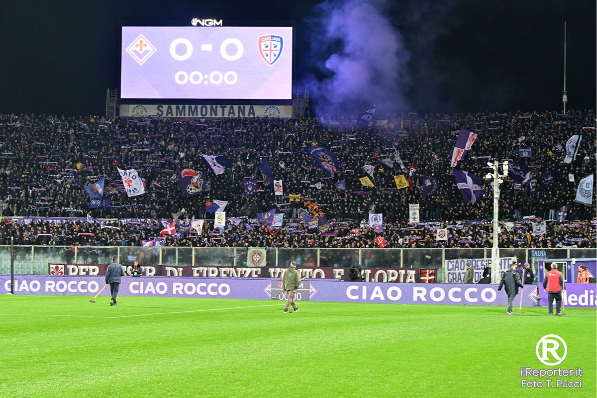 Prima della partita si è svolto un omaggio al presidente Rocco Commisso con i ragazzi e le ragazze del settore giovanile in campo con un fiore bianco in mano e una foto di lui che manda un bacio a centrocampo. Nei viola, ancora senza Kean (dolorante a una caviglia) gioca Piccoli. Il Cagliari, reduce dal successo sulla Juventus, si affida ad Esposito alle spalle di Kiliçsoy.