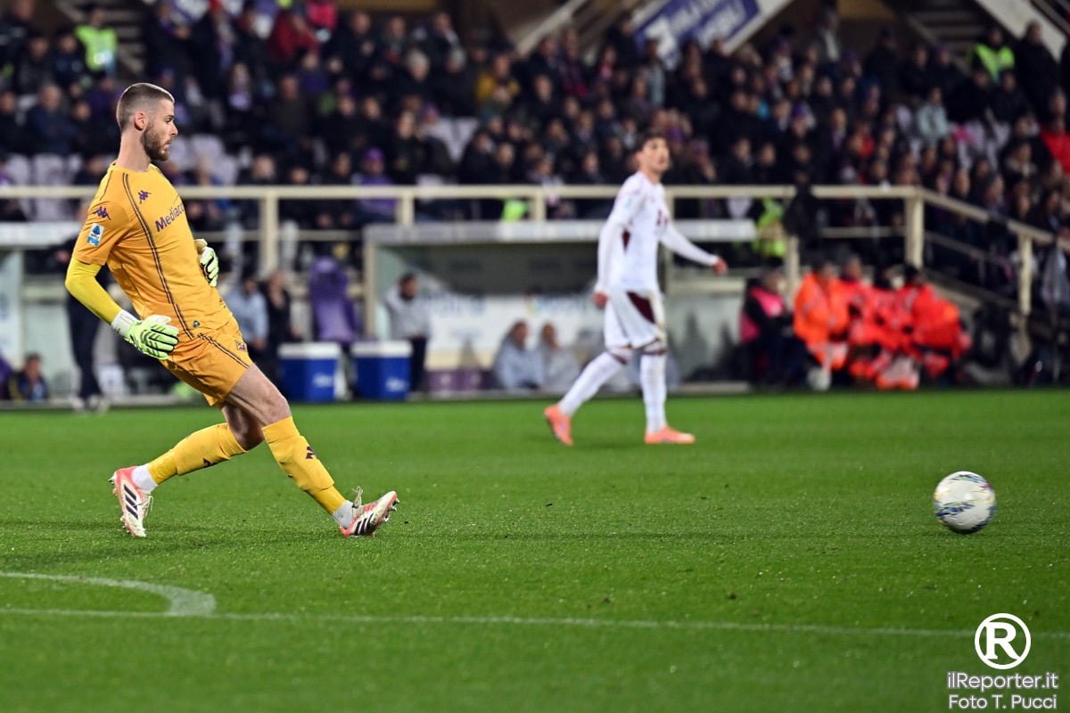 La Fiorentina che ritrova Kean dal primo minuto si fa subito arrembante proprio con l’attaccante ma il tiro finisce sul fondo. È sempre Kean ad essere pericoloso su una verticalizzazione di Fagioli ma l’azzurro scaglia il pallone in alto. Al 26’ cross di Ilkhan per la testa di Casadei che, tutto solo, beffa De Gea per l’1-0. Difesa inerme con errore di Dodò che tiene in gioco l’avversario. La Fiorentina ci prova due volte con Brescianini, poi con Mandragora, con Gudmundsson e con Kean ma Paleari è sempre pronto a parare.