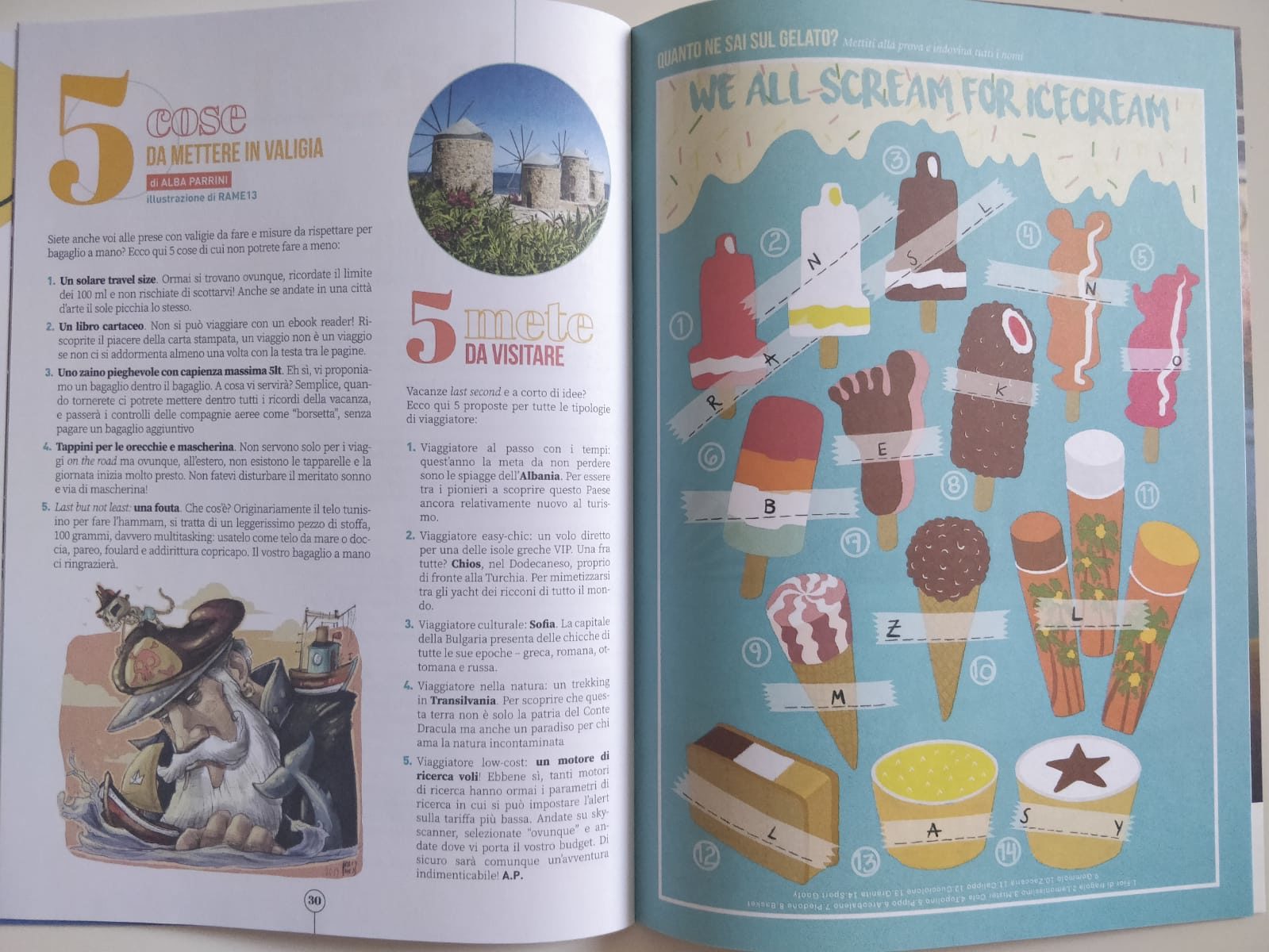 Ma la freschissima novità del numero dell’estate sono le pagine dei giochi: Cruciverba, Indovina il gelato con le splendide illustrazioni di Marta Staulo, gli Haiku del cinema a cura di In Fuga dalla Bocciofila, Unisci i puntini e tanto altro. Ah, ovviamente le stelle stralunate dell’Oroscopo di Lavinia Ferrone vi seguiranno anche in questo numero.
