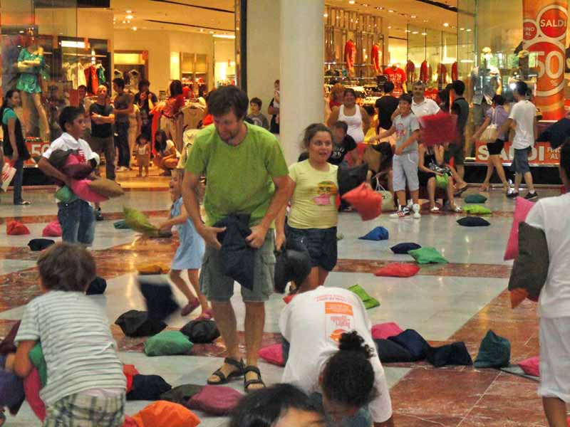 L’ora X è scattata ieri alle 16, quando un esercito di bambini e ragazzi si è dato appuntamento alla Corte Tonda del centro commerciale di Campi Bisenzio per scatenare una battaglia di cuscini senza esclusione di colpi.