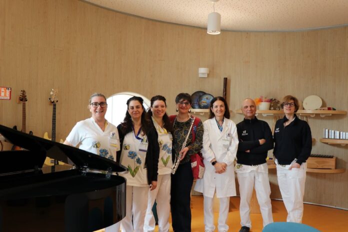 Il training musicale, svolto rigorosamente in presenza, grazie ai “musicisti in corsia” dell’Athenaeum Musicale coordinati da Alessandro Perondi, e alle audiometriste e logopediste coordinate dalla dottoressa Benedetta Bianchi del Servizio di Audiologia acquisisce un valore unico e insostituibile: il lavoro diretto con i professionisti, la relazione terapeutica, la dimensione emotiva dell’esperienza musicale e l’interazione in tempo reale bambino-musicista rappresentano elementi fondamentali per un percorso efficace e personalizzato.